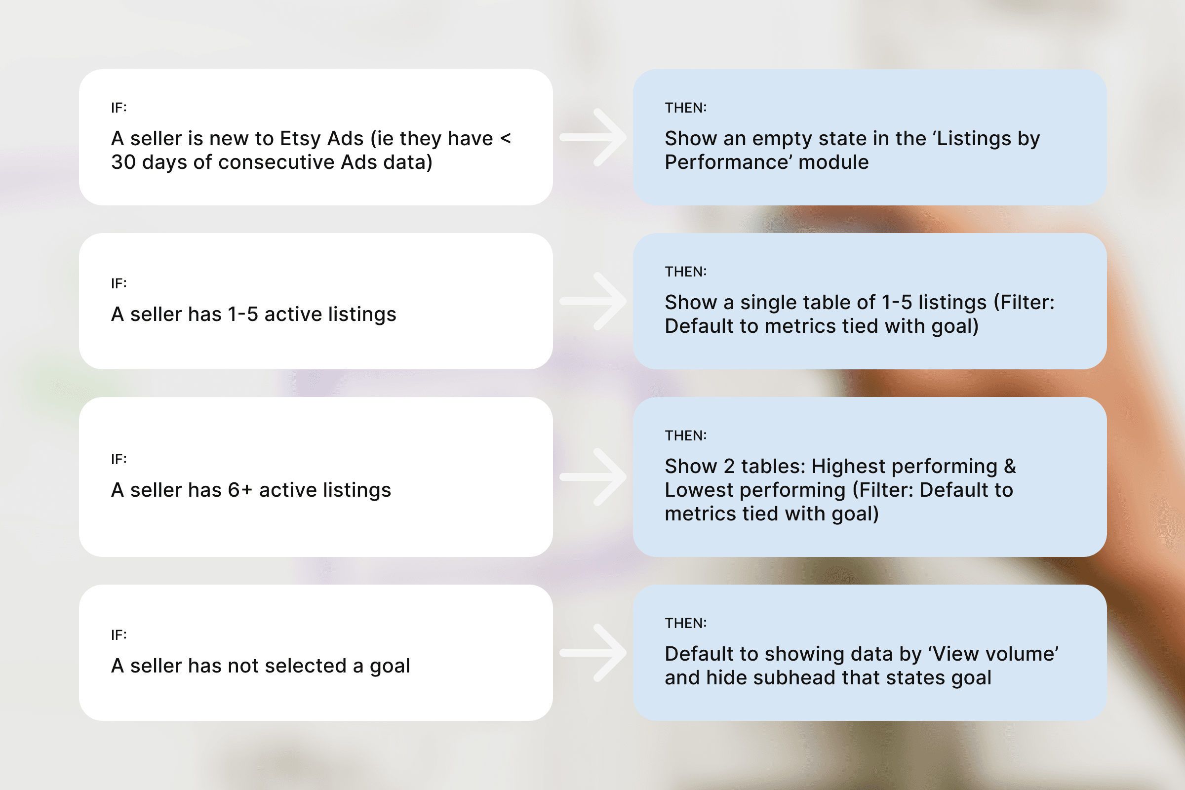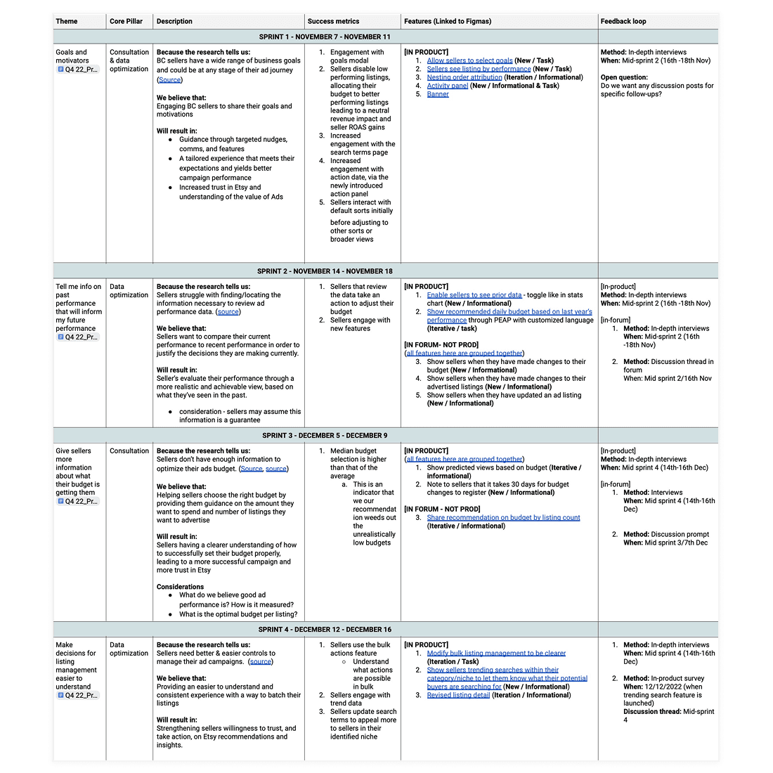 As Design Lead: I owned programming across the four-week, 400-seller beta (planning, monitoring engagement, synthesis), conceptualized eight of the 14 features (three of which ranked top five most wanted), and led rollout strategy for tools prioritized for the permanent experience.