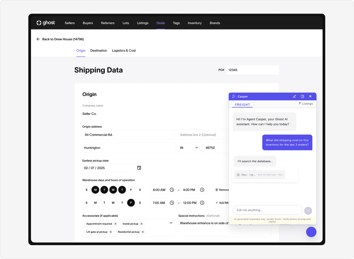 Ghost is a private distribution platform for the worldโs best brands. Operations teams supported millions in monthly volume but spent hours daily managing freight across disconnected tools.