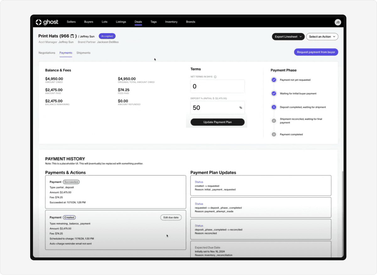 Ghost’s B2B payment functionality was narrow with low adoption. Significant manual involvement was required to support multi-millions in weekly order values.